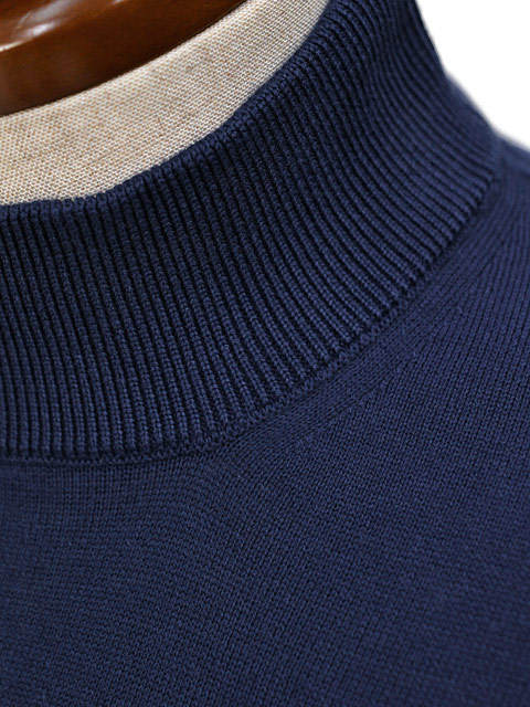 春夏ニットの新定番モックネック。ジャケットやブルゾンの首元を汚れからカバーしてくれるその実用性が一つの魅力。