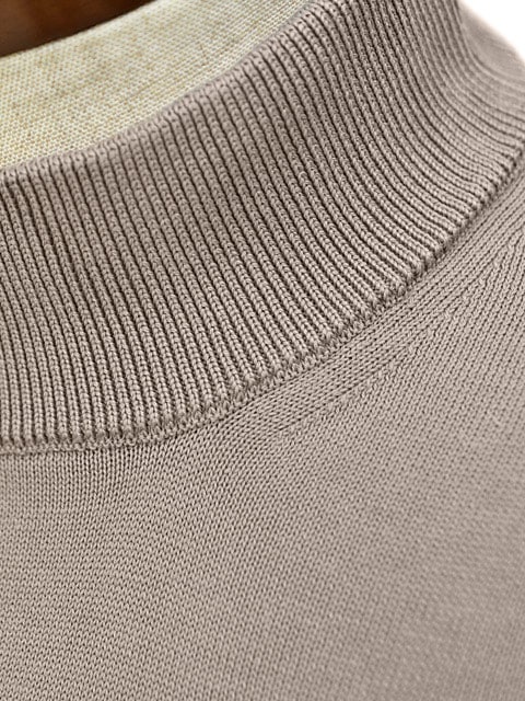 春夏ニットの新定番モックネック。ジャケットやブルゾンの首元を汚れからカバーしてくれるその実用性が一つの魅力。