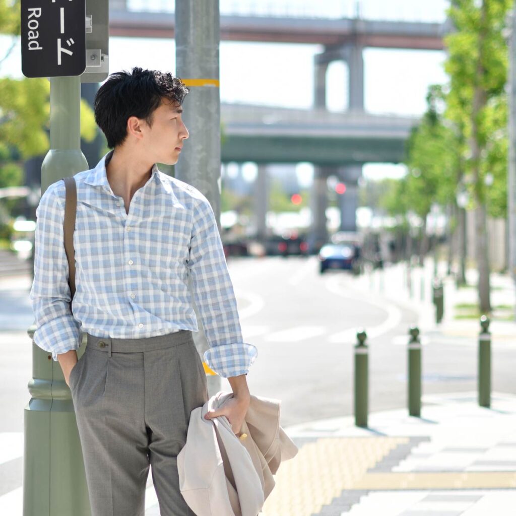 半世紀以上も男性たちに支持されてきたFinamore【フィナモレ】は、ナポリのテーラリングの伝統を拠り所としながら、マシンメイドにはない手縫いならではの着心地の良さを実現しています。フィナモレのシャツを身につけるということは、クチュリエ仕立てのシャツだけが伝えることのできる細やかな感性が作り出す世界との出会いでもあります。