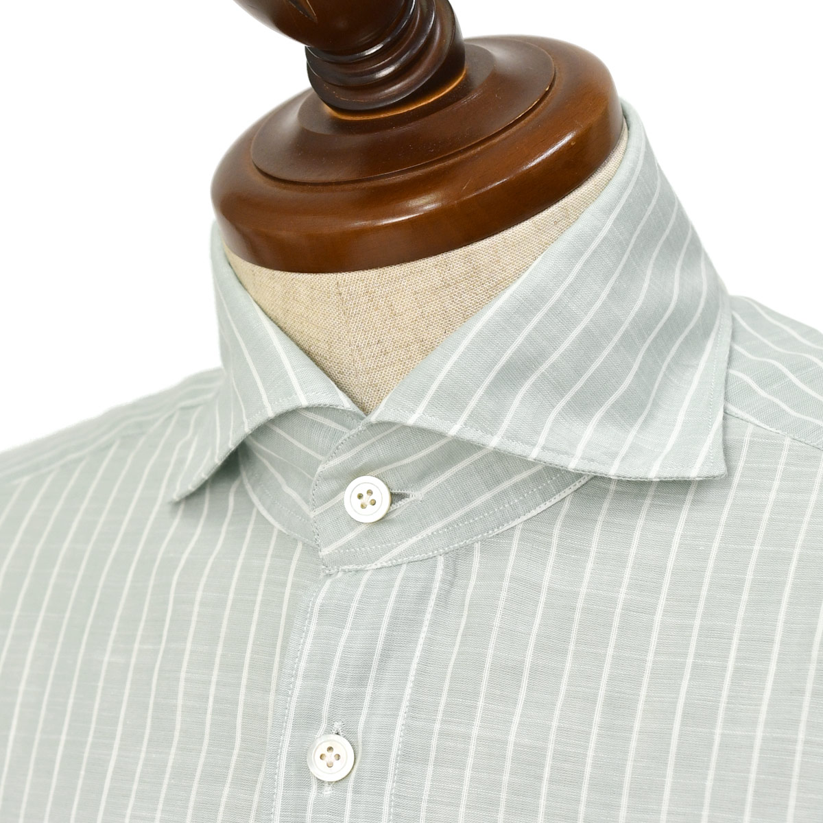 SERGIO【セルジオ】の特徴である台襟の高さはそのままに、襟の開きをSIMONE【シモーネ】の角度に抑える事により、カーディガンやジャケットのインナーにも収まりがよくなりました。