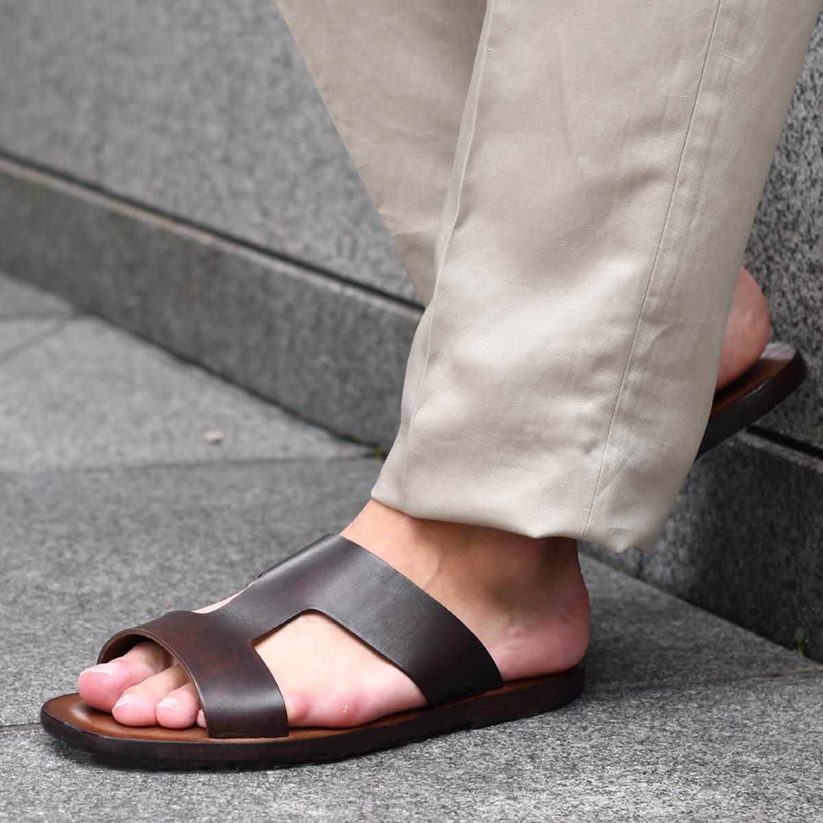 古くからの希少な手法で生み出されるサンダルは、上質なドレスシューズと同じように大切に履き続けることで、革の質感や色合い、履き心地の良さなどが増していき、その人だけの最高の一足になっていきます。