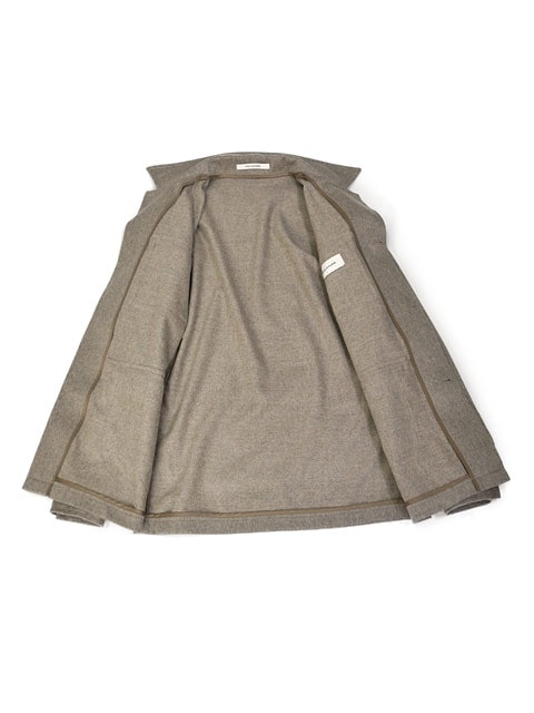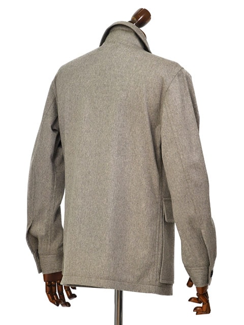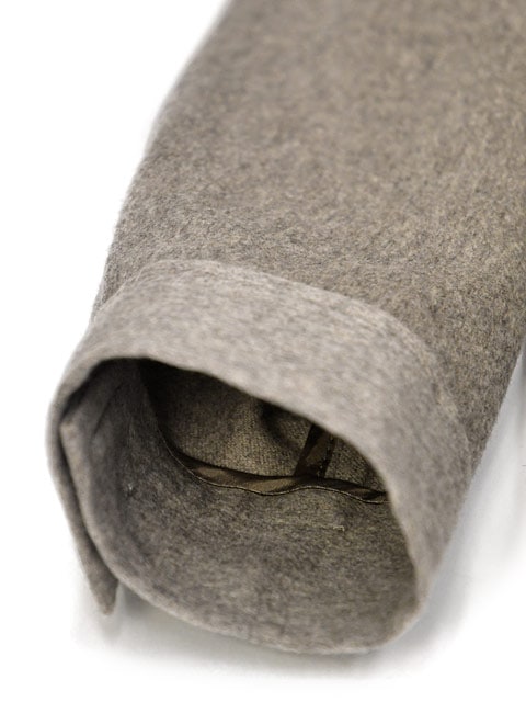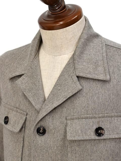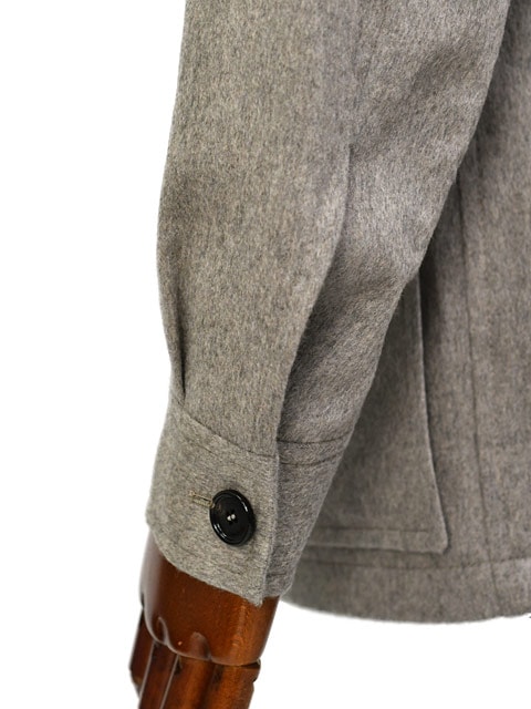 なめらかさとカシミヤ特有のぬめり感、そしてかすかな光沢を放つカシミヤウール生地と控えめなグレーが混ざり合い、慎ましくも存在感のあるブルゾンが完成しました。