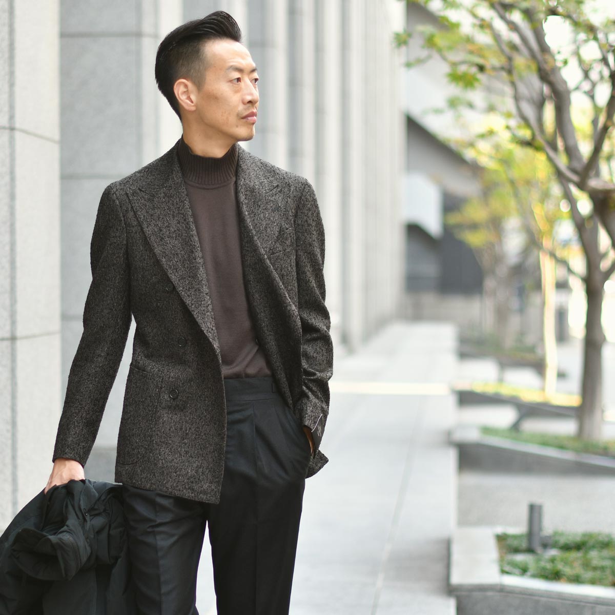 ネップ感のある表情が個性的な一着。アルパカ混の暖かい生地は秋冬シーズンに大変重宝します。