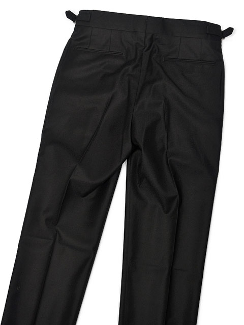 通常付いていないサスペンダー用ボタンをリクエストにより内蔵している為、サスペンダーで吊るすことも可能。