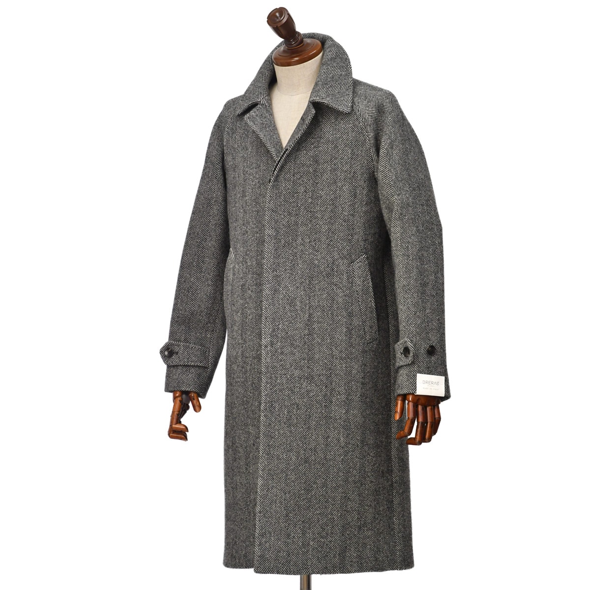 ラグランスリーブ仕様のため、肩への乗り方も優しく、クラシックな素材感とボリュームからは想像がつかない軽い着心地に仕上がっております。