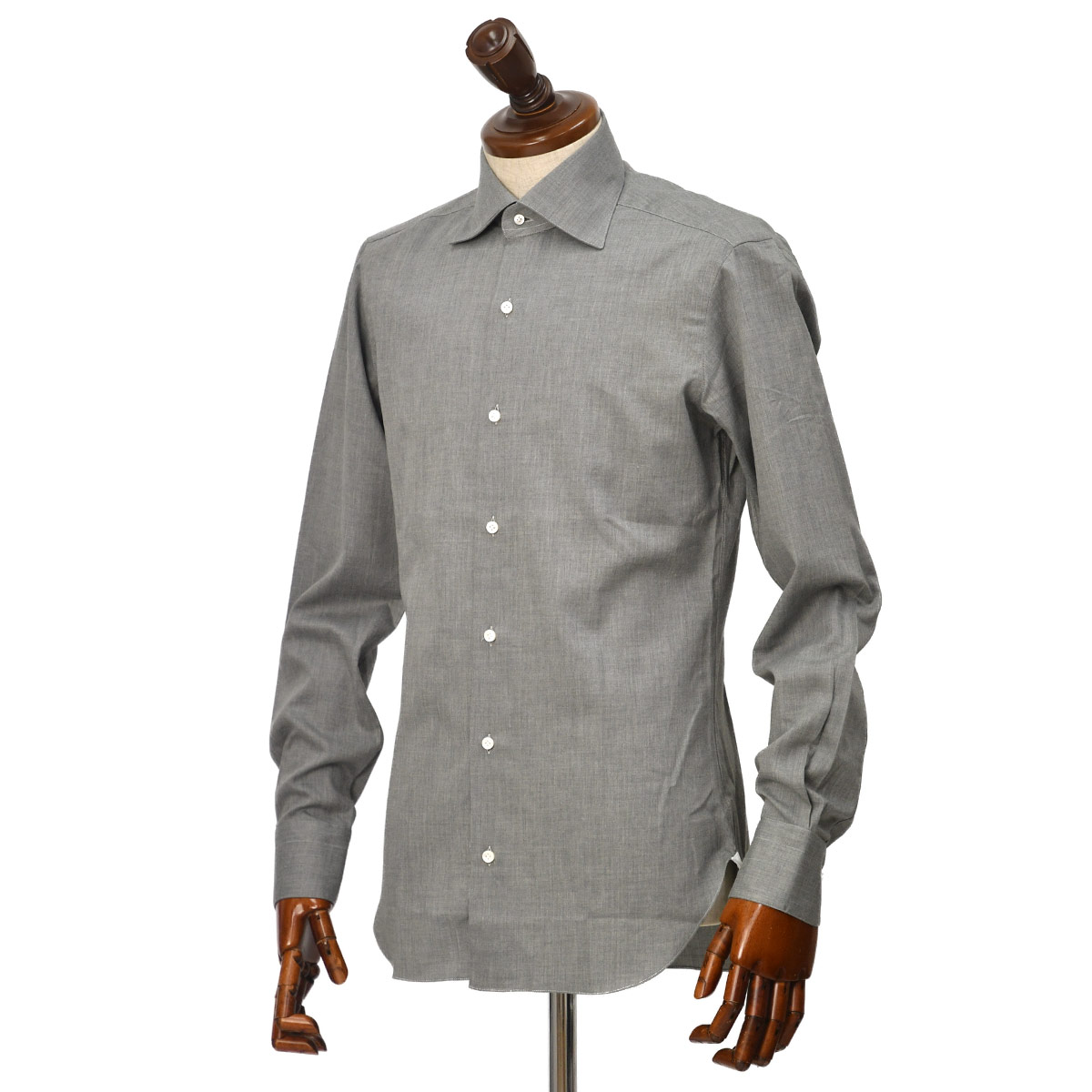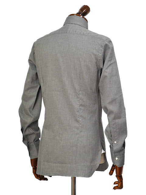 BRUNOのナポリのカミチェリアらしい襟高仕様(ハイカラー)はそのままに、ホリゾンタルワイドからセミワイドスプレッドへと開きを抑えた襟型。