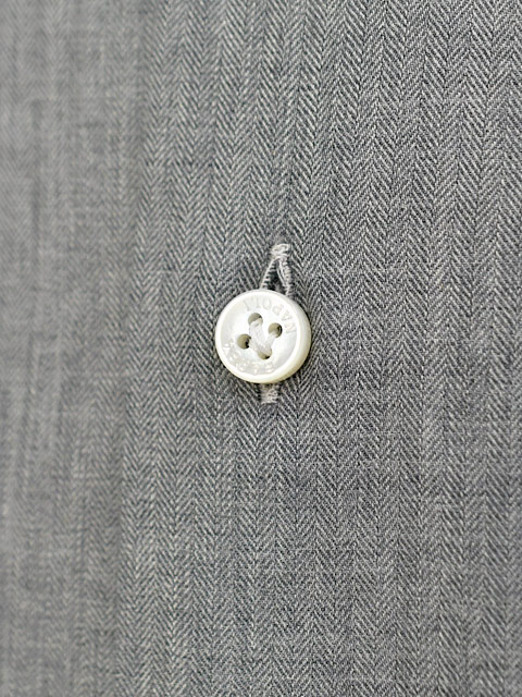 ボタンには高級品である白蝶貝を使用し、驚きなのは「4mm」の厚み、肉厚な表情は重厚さを感じ独特なツヤ感は贅沢さを感じさせます。