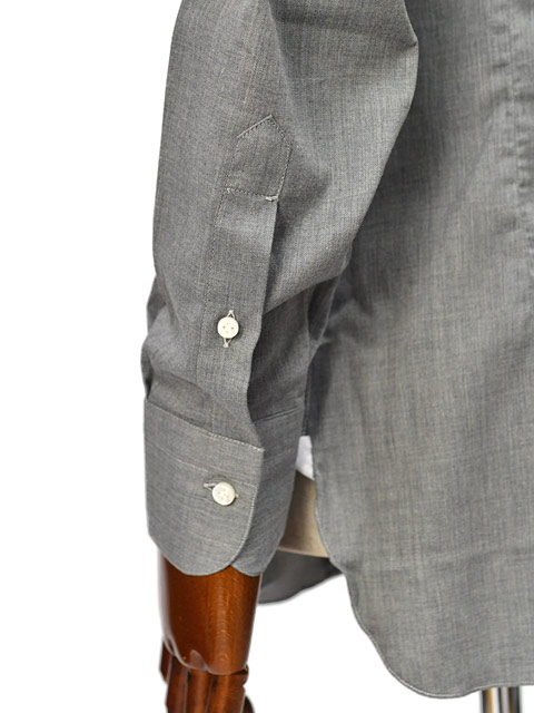 熟練したシャツ職人のハンドワーク技術によりイセ込まれた肩と前振りの袖付けによって、シャツが腕回りの動きに柔軟に対応するため、ストレスのない着用感と、立体的な仕上がりを味わえます。